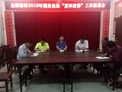 2018年6月8日,汤泉乡龙潭寨村组织村民组长、党小组长召开2018年脱贫攻坚“夏季攻势”会议,会议由安庆市人社局下派驻村扶贫第一书记倪祥军同志主持,学习了太湖县2018年脱贫攻坚“夏季攻势”实施方案和汤泉乡2018年脱贫攻坚“夏季攻势”实施方案。深入推进“重精准、补短板、促攻坚”专项整治行动。