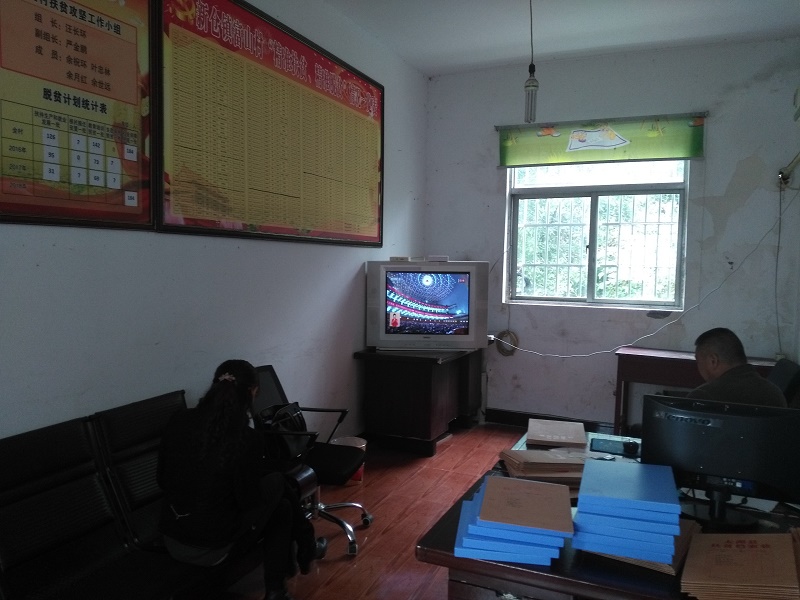 两委成员及党小组组长在村部在线收看十九大开幕会