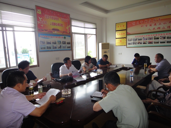 惠民村两委迎接省扶贫工作检查组部署会、书记李劲松主持、参加会议的还有镇扶贫分管领导周敏。