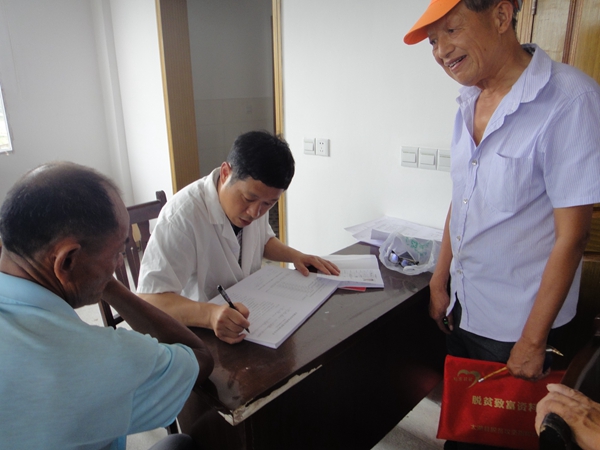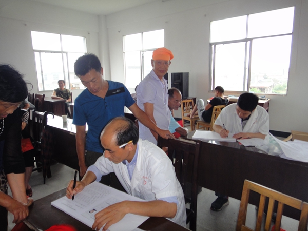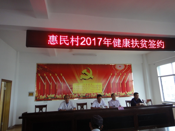 惠民村2017年拟脱贫户健康扶贫签约现场会、由村卫生室周盛进主任现场具体实施和负责。