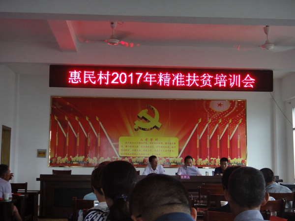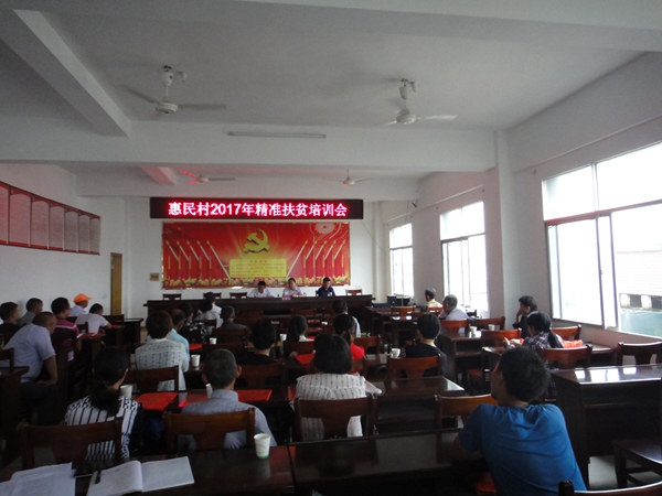惠民村2017年精准扶贫培训会、由书记李劲松主持。