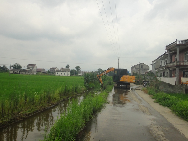 今天上午8:00、我村安排了一台挖土机一辆农用车.工作人员五名、对辖区内五支渠淤泥和杂草进行了彻底清理、有力保障了周边农田的排涝和汛期渠道的畅通。