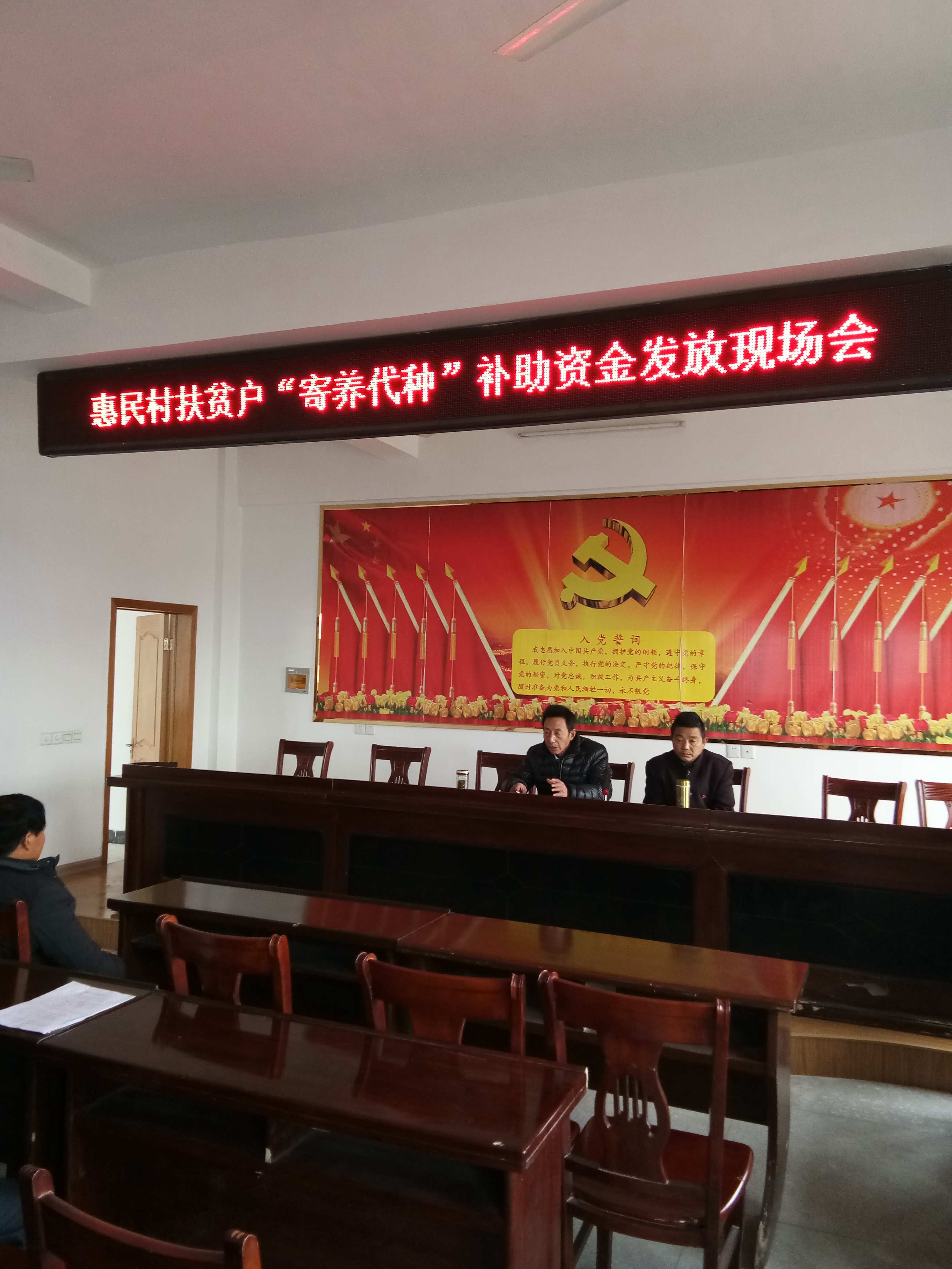 2017年12月1日下午3点、我村在三楼会议室组织召开了扶贫户“寄养代种”补助资金发放现场会、大会由村主任李锡根主持。
