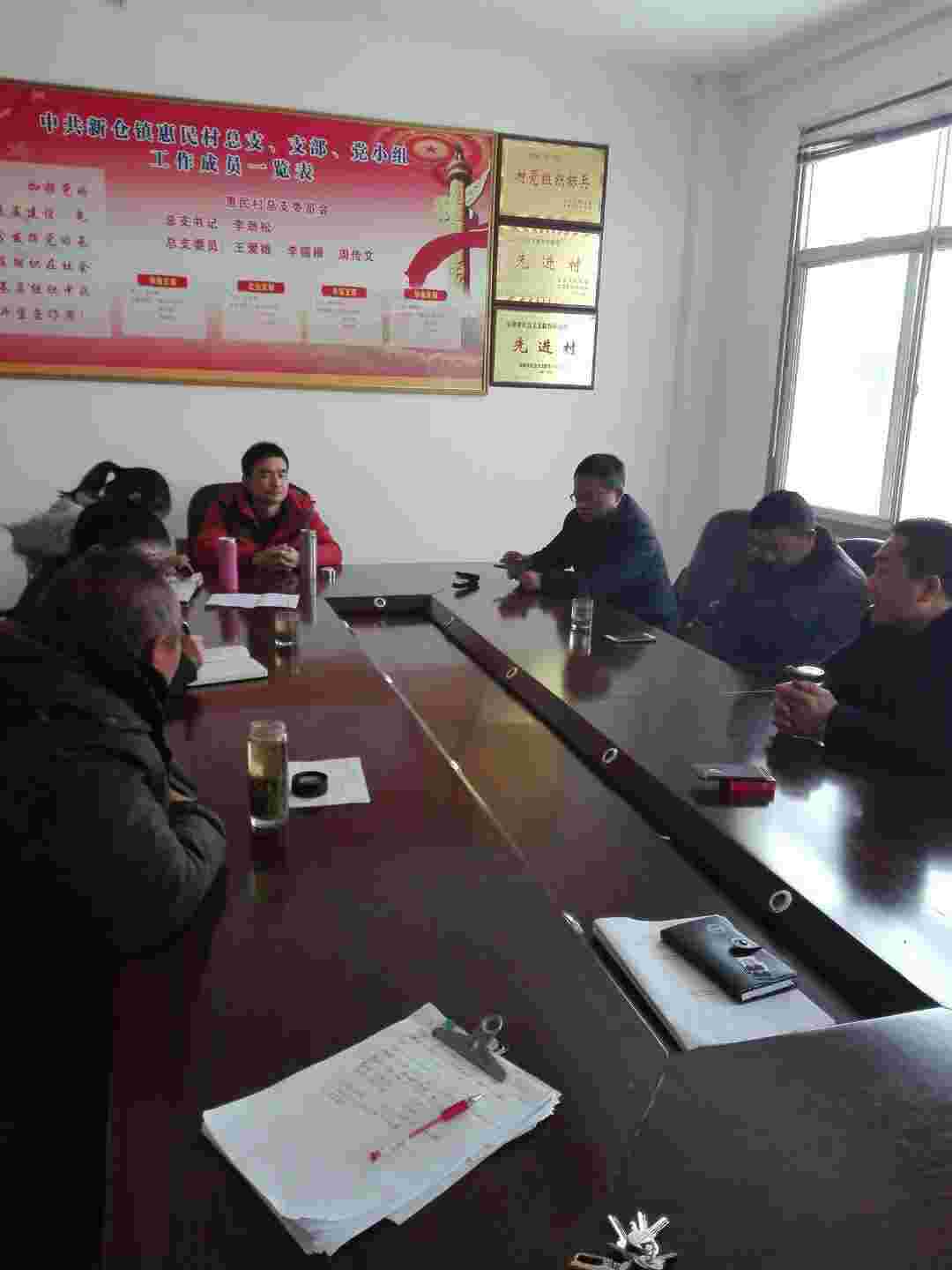 2018年1月31日、太湖县委办公室工作组在我村二楼会议室对全县村级工作进行了抽样调研、此次能把惠民作为试点、说明了我村一直以来的各项工作得到了上级政府的肯定、始终走在全镇村级前列、参加调研的有新仓镇金龙辉副书记、惠民村李劲松书记、惠民村李锡根主任及民兵营长周传文。