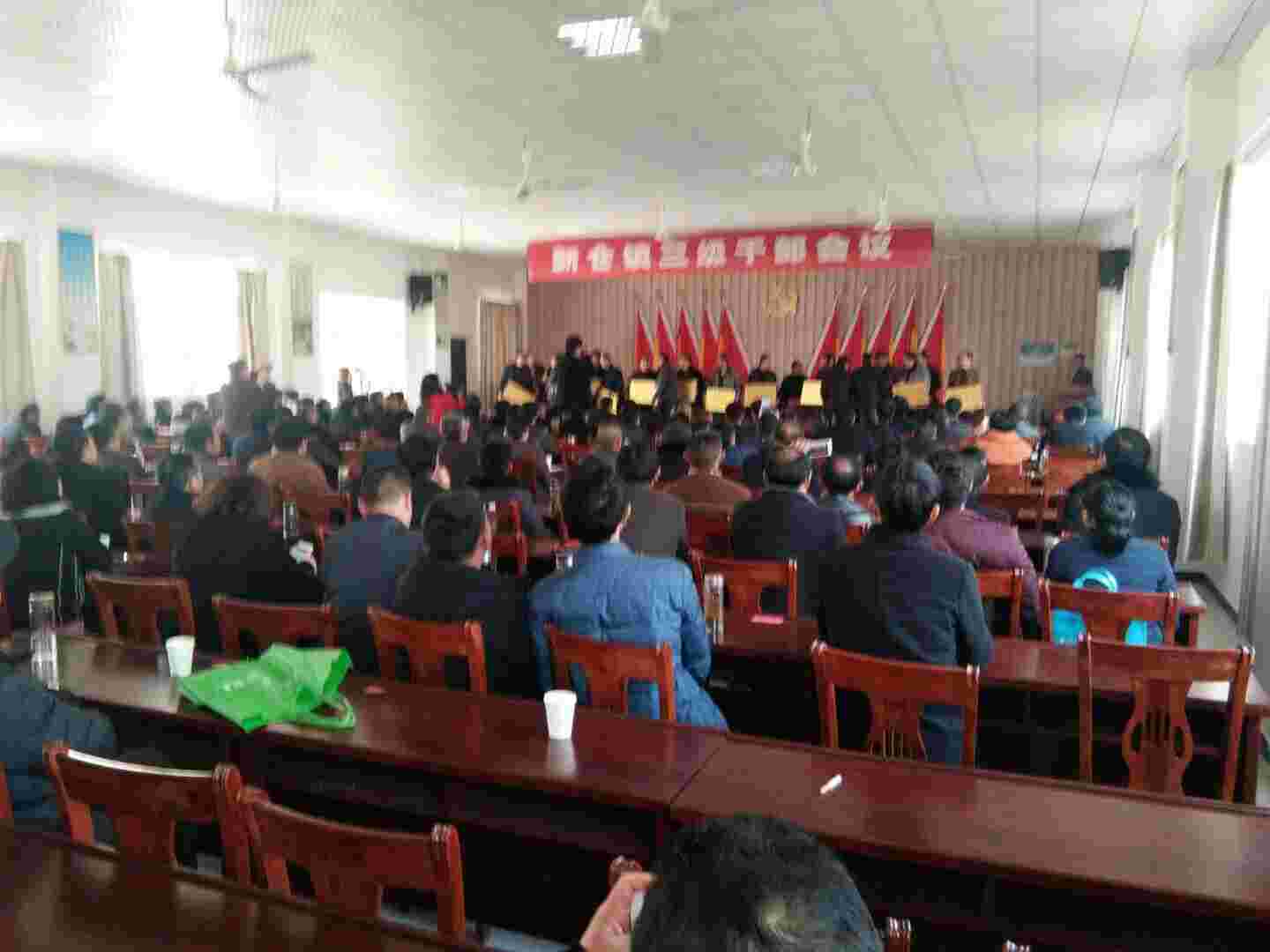2018年3月10日上午9:00、新仓镇党委政府在新仓村会议室组织召开了2018年新仓镇三级干部会、全镇各村村两委班子成员、各村优秀组干、各村致富带头人及镇直机关部门负责人参加了此次会议、会上对先进单位、优秀个人进行了表彰。