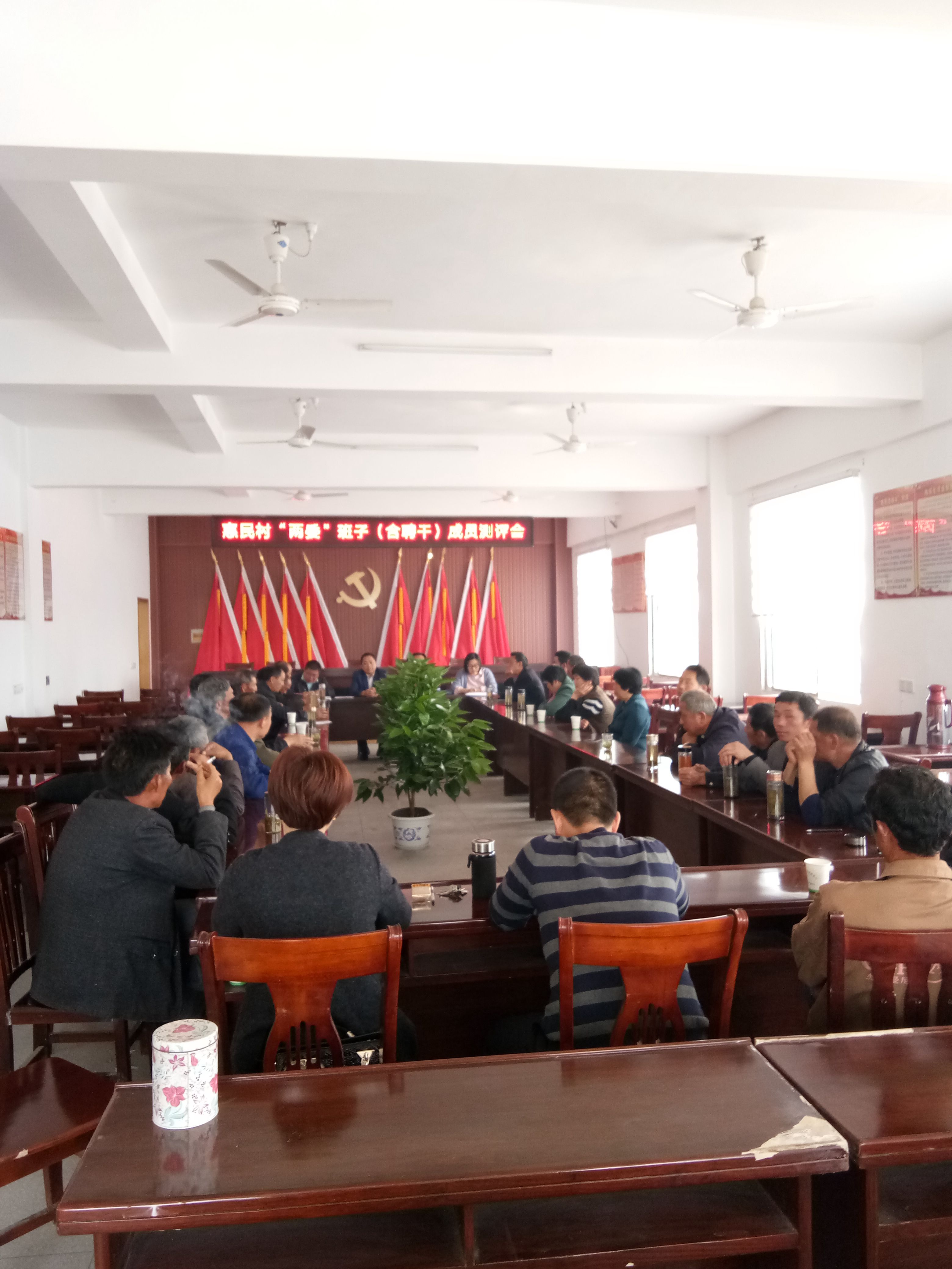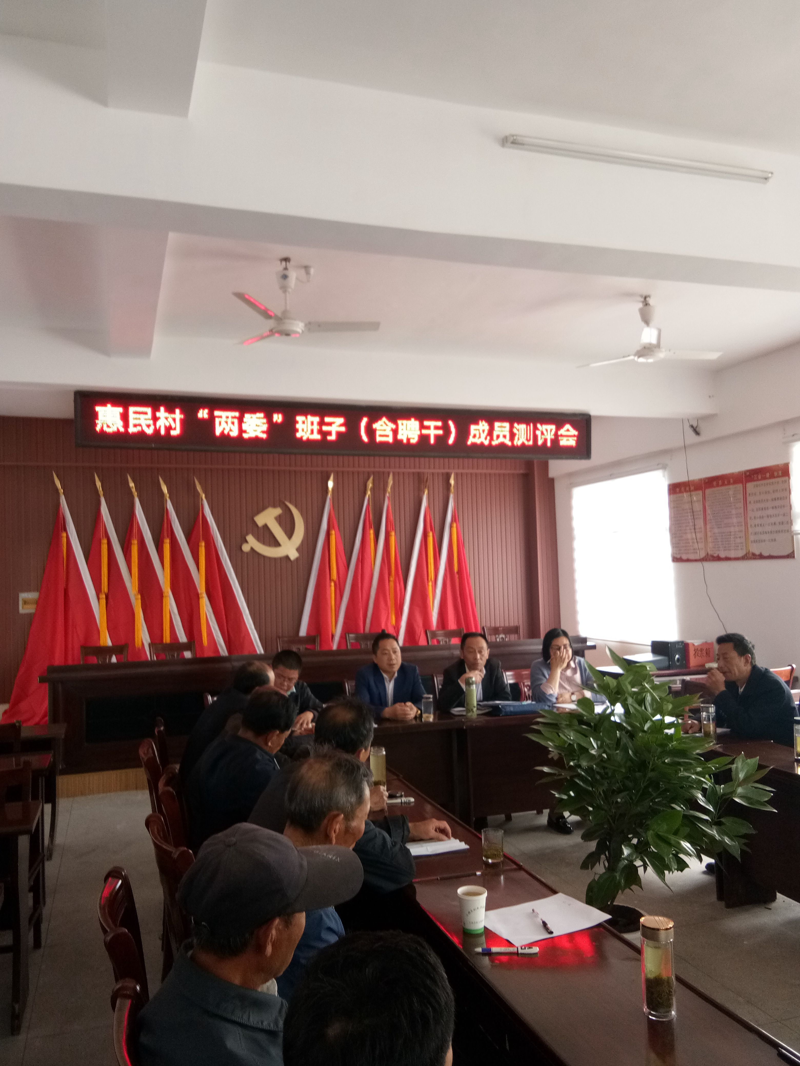 2018年4月11日上午、惠民村总支组织党小组长、村民小组组干在村部三楼会议室召开了惠民村“两委”班子(含聘干)成员测评会、大会由村总支书记李劲松同志主持、新仓镇纪委书记贾跃进同志、委员刘燕同志出席了本次会议、贾书记并作了重要讲话。肯定了现任两委班子的工作成绩、希望与会人员本着公平、公正的原则参与测评。