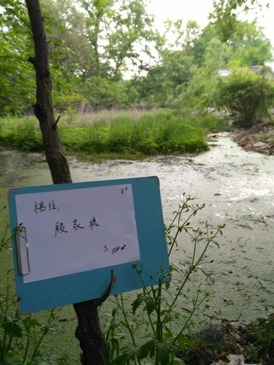 2018年4月11日下午、周传文、李新春两名同志开始了全村水塘测量和统计工作。