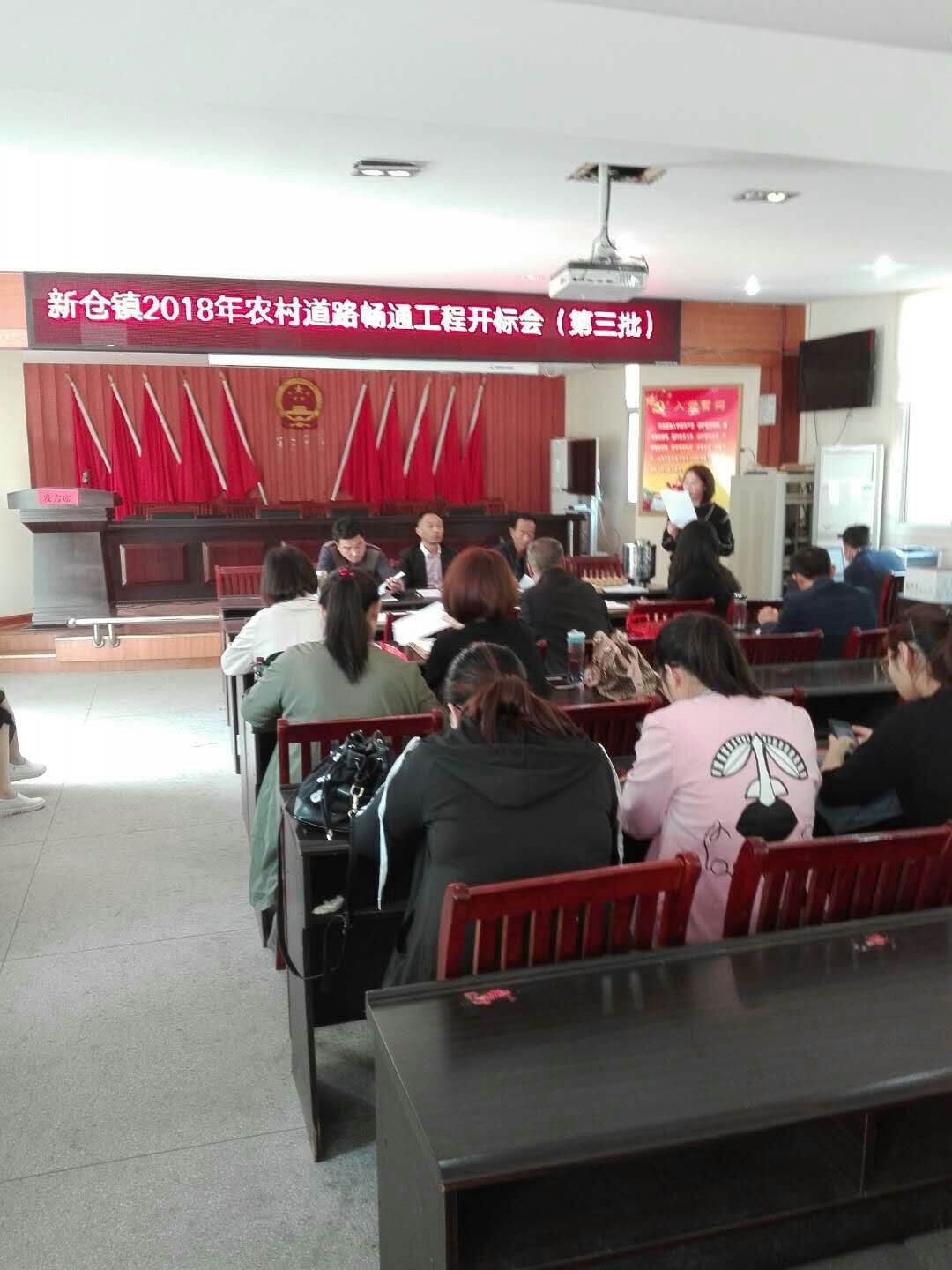 2018年4月20日上午9点.村会计李小翟同志参加了新仓镇2018年农村道路畅通工程开标会.我村主要是对李楼坝上水泥路进行招标