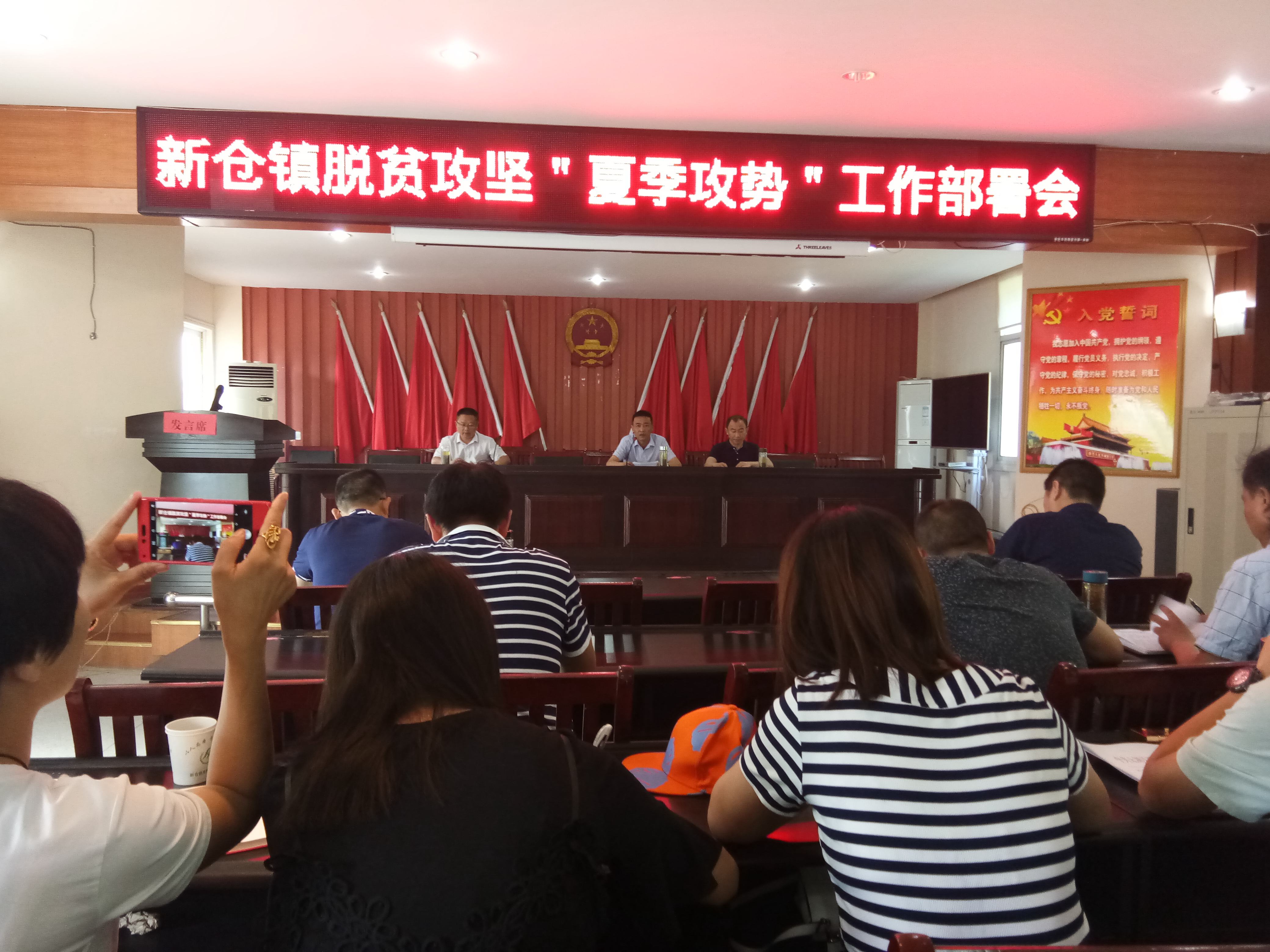 2018年6月6日上午9:00,新仓镇政府在二楼会议室召开了新仓镇脱贫攻坚“夏季攻势”工作部署会,镇长胡小亮同志主持,镇副书记金龙辉同志对脱贫攻坚工作进行了具体安排,会后胡小亮同志作了会议总结,并提了相关要求,各村书记,主任,扶贫专干,扶贫工作队队长,镇直各单位负责人,机关全体职工参加了此次会议。我村参加人员:书记李劲松,主任李锡根,扶贫专干曹刘海。