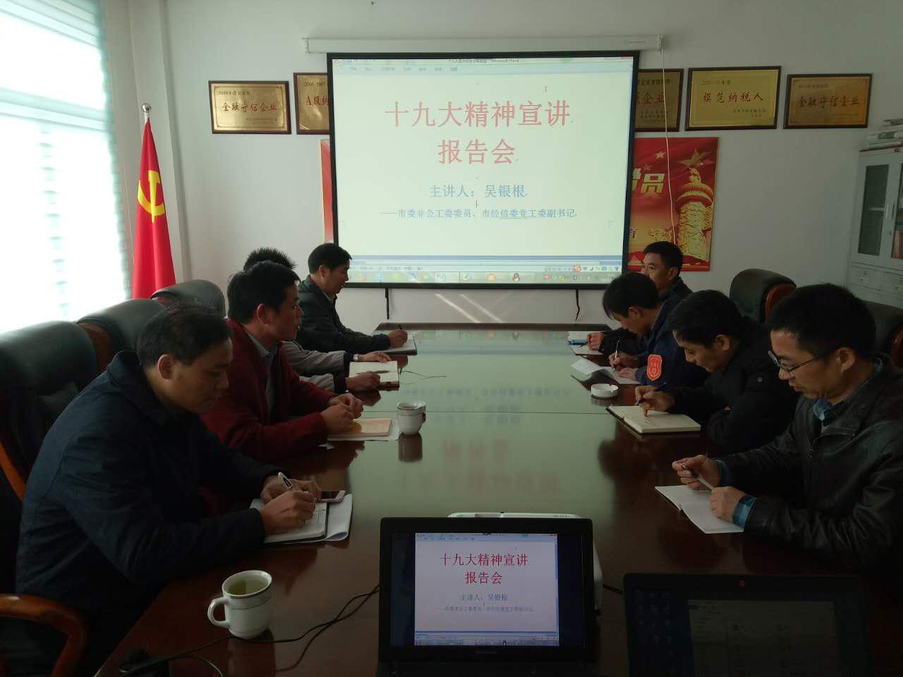 吴银根在宣讲时强调,党的十九大报告是中国特色社会主义进入新时代的宣言书,是建设社会主义现代化强国的动员令,是实现中华民族伟大复兴的总蓝图。他从十九大的重大意义、主要成果、丰富内涵以及党建新要求等方面进行了详细宣讲,报告内容丰富、深入浅出,既有透彻的理论阐述,又有生动的实例分析,对深刻领会党的十九大精神有积极的促进作用。