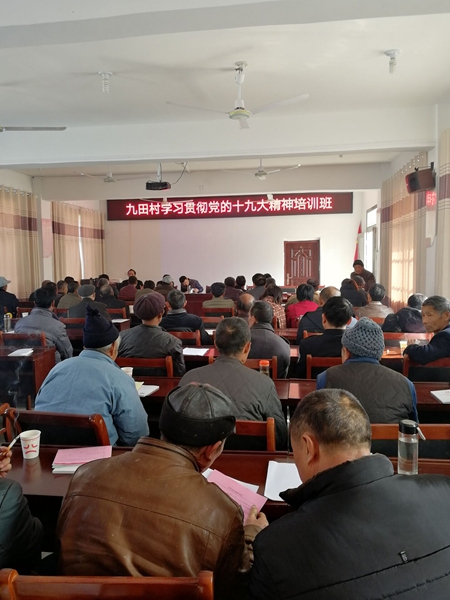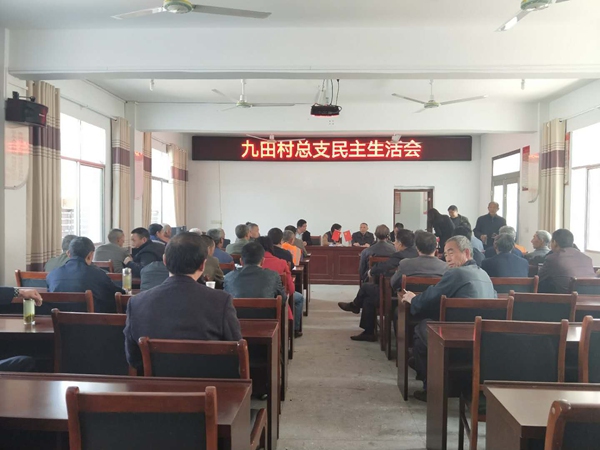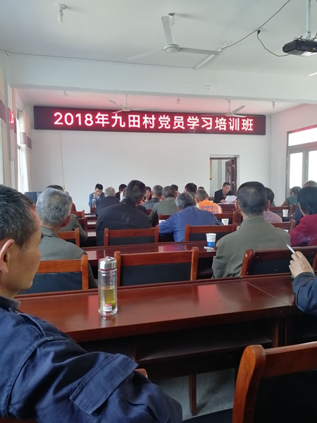 九田村2005年由原九田、赵林、郑畈、兰家四个村合并而成。辖33个村民组,821户,3012人。全村2014年建档立卡贫困户290户961人,2014年完成脱贫38户162人,2015年完成脱贫38户148人,2016年完成脱贫34户145人,2017年完成脱贫47户186人,2018年计划脱贫110户291人。我村目前五保户44户46人,低保户54户124人,残疾人186人。村干部7人,其中:村两委成员5人、村扶贫专干1人、村后备干部1人,村干部中党员人数4人。村设立党总支,下设九田、赵林、郑畈、兰家4个支部、8个党小组;中共党员116人,预备党员1人,党员发展培养对象和入党积极分子4人。