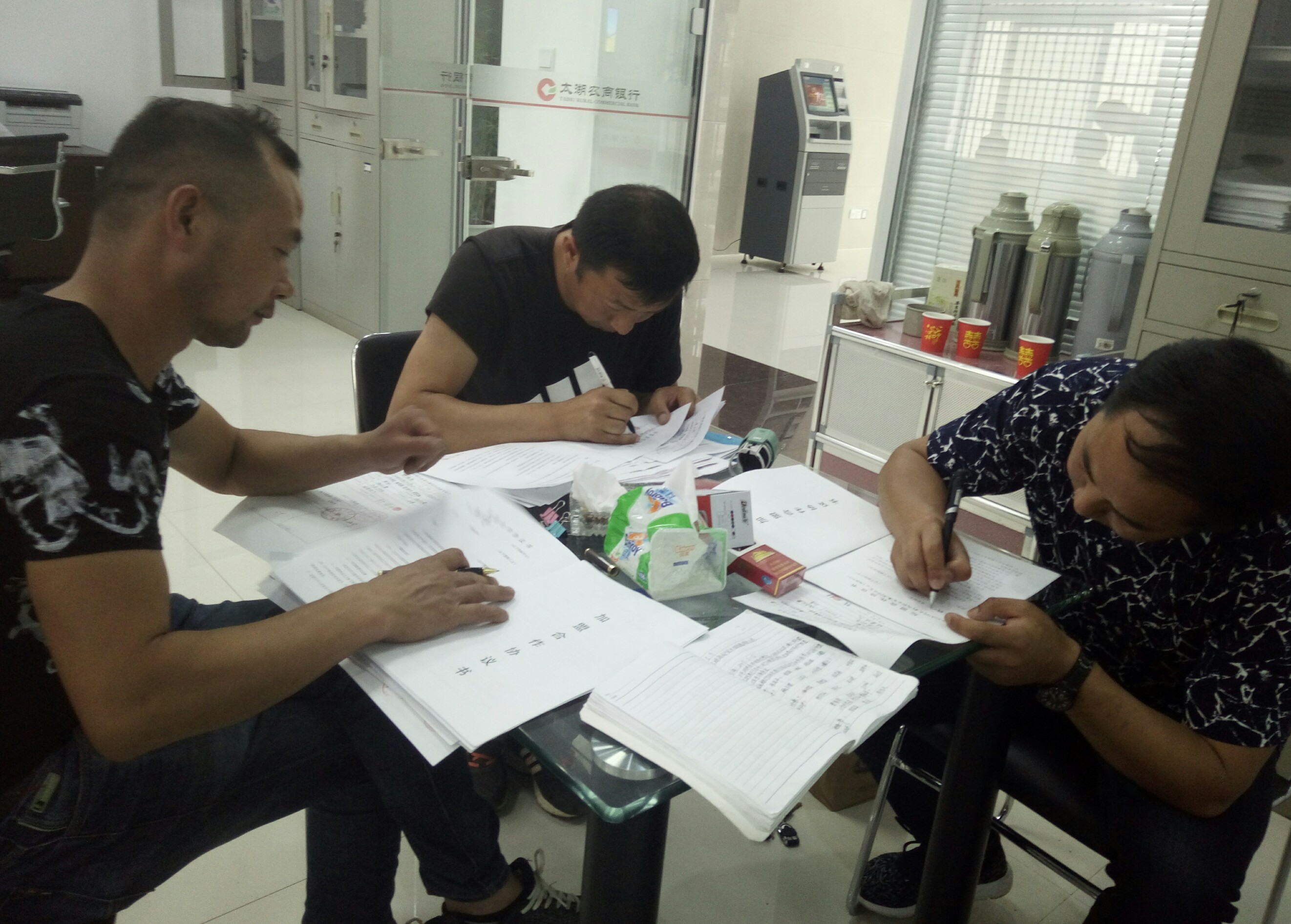 晋湖村六位企业户到龙山银行办理小额信贷手续