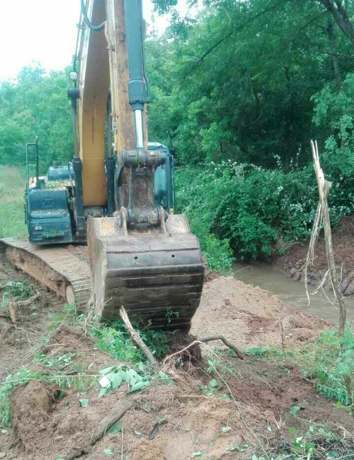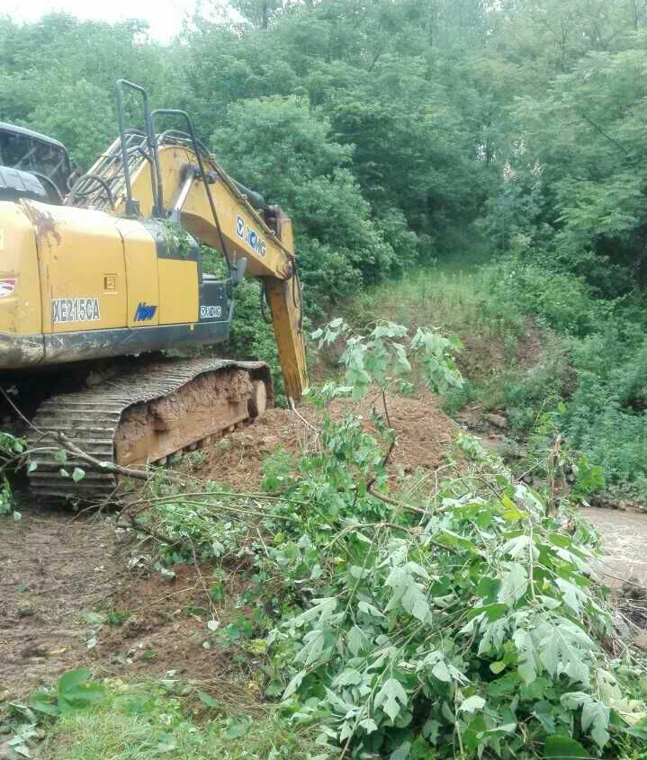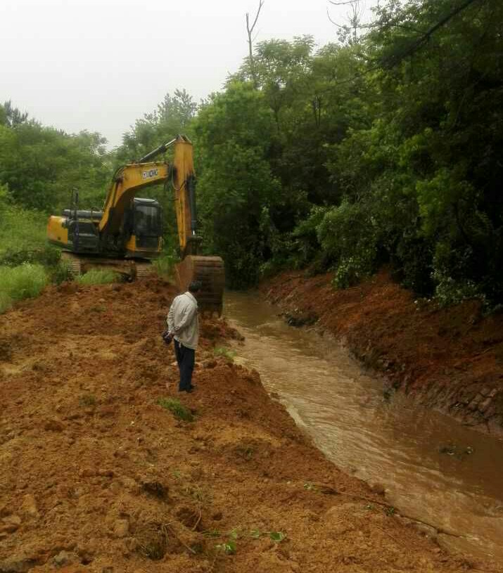 晋湖村安排机械清挖贾屋河道,防止内涝