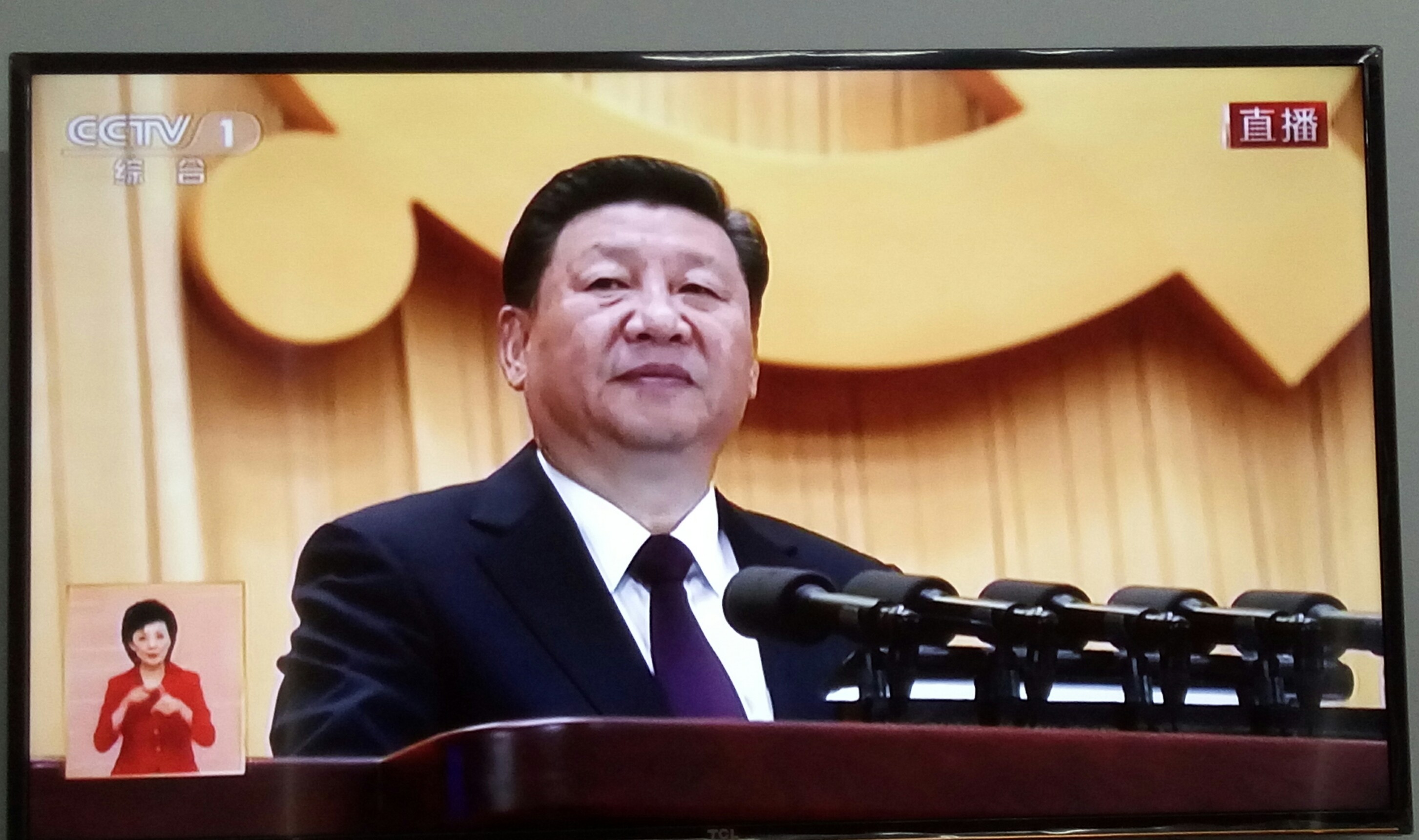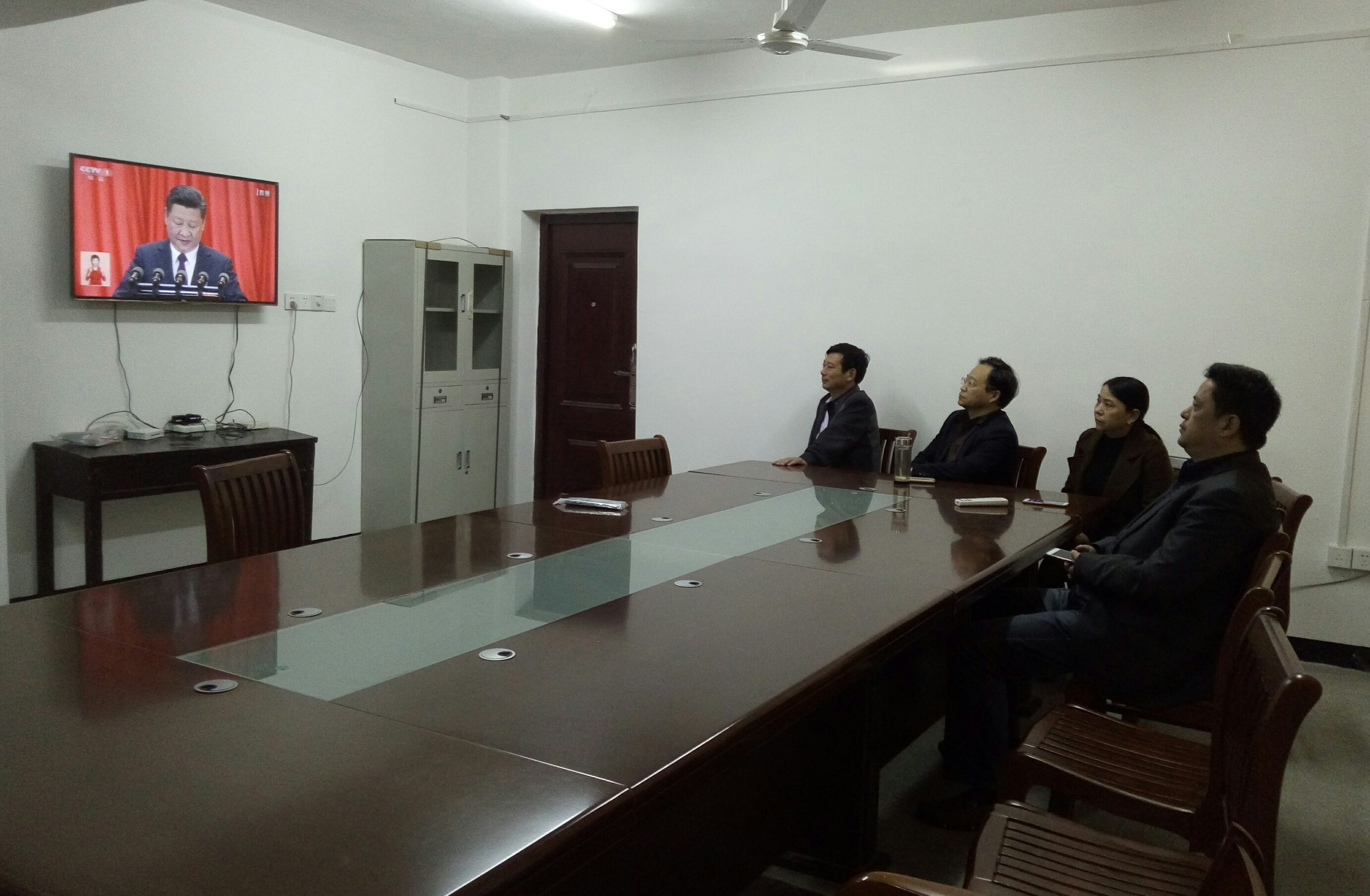 村两委在村会议室观看中国共产党第十九次全国代表大会开幕会