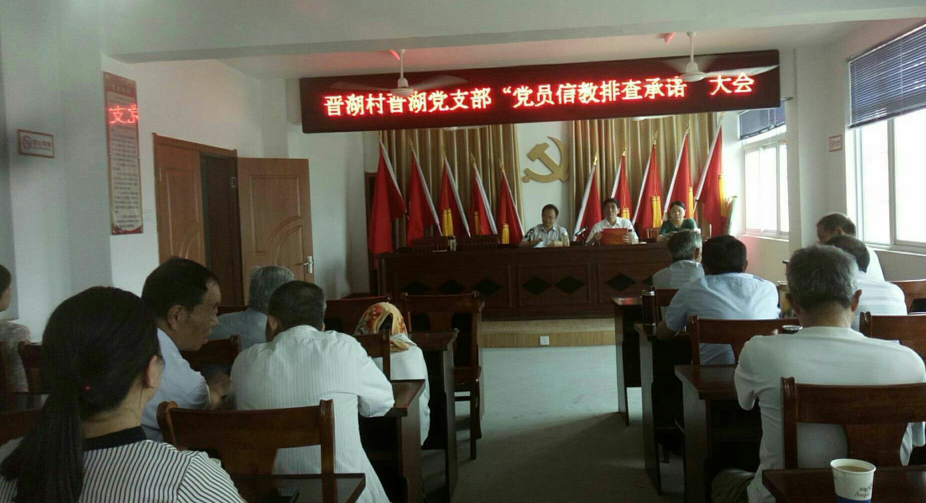 2018年5月17日晋湖村召开晋湖党支部“党员信教排查承诺”大会及新党员宣誓!