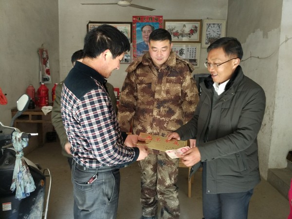 2月4日,刘畈乡党委书记蒋志才带领乡武装、双拥办、民政办等办工作人员到栗树村慰问现役军人家属,给军属送上春节前的祝福,感谢他们对部队建设的支持。